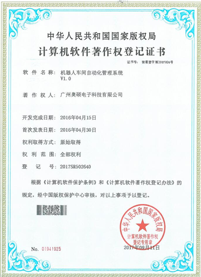 經(jīng)過上年度公司全體技術(shù)人員的努力,公司取得了多個(gè)由中華人民共和國國家版權(quán)局頒發(fā)的計(jì)算機(jī)軟件著作權(quán)登記證書,這不僅證明了奧碩電子科技在軟件著作權(quán)方面取得的優(yōu)異成績,還意味著奧碩電子科技自主研發(fā)能力在具有獨(dú)立知識產(chǎn)權(quán)的計(jì)算機(jī)軟件領(lǐng)域得到了權(quán)威的認(rèn)可,也體現(xiàn)出公司為客戶提供最具競爭力產(chǎn)品的強(qiáng)大決心。