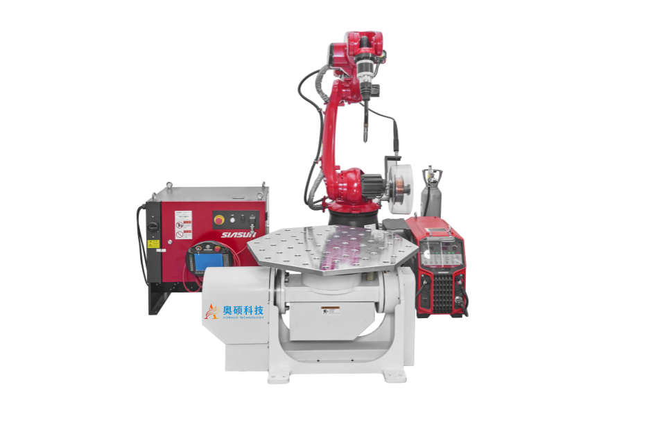 智能焊接機(jī)器人實(shí)訓(xùn)平臺(tái)由新松工業(yè)機(jī)器人、焊接電源、焊槍、送絲機(jī)、機(jī)器人底座、雙軸變位機(jī)、焊接柔性平臺(tái)、夾具、焊接氣瓶、焊接模具及安全圍欄等組成,可實(shí)現(xiàn)6+2八軸聯(lián)動(dòng)焊接技術(shù)應(yīng)用,對(duì)復(fù)雜不規(guī)則的工件進(jìn)行焊接。