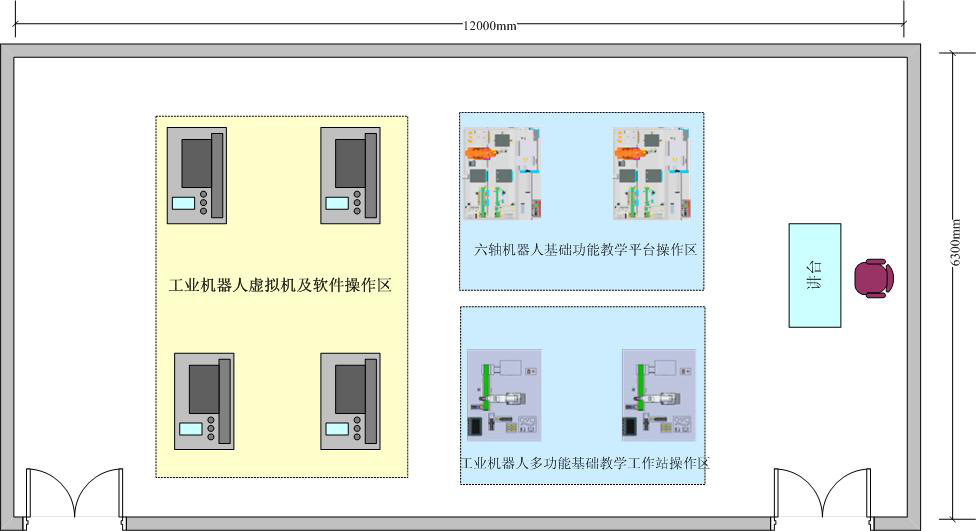 本專業(yè)實(shí)驗(yàn)室包含2套六軸機(jī)器人基礎(chǔ)功能教學(xué)平臺(tái)、2套工業(yè)機(jī)器人多功能基礎(chǔ)教學(xué)工作站、4套工業(yè)機(jī)器人虛擬機(jī)和相關(guān)的機(jī)器人教學(xué)仿真軟件。本實(shí)驗(yàn)室設(shè)備系統(tǒng)針對(duì)院方所提出的各種指標(biāo)所設(shè)計(jì),機(jī)器人、1套皮帶輸送線、碼垛擺放架、若干工件工裝、單元控制器及電氣系統(tǒng)等設(shè)備組成,可實(shí)現(xiàn)碼垛、TCP標(biāo)定、繪圖等模擬演示,同時(shí)能展開與機(jī)電一體化相關(guān)的一系列實(shí)驗(yàn)實(shí)訓(xùn)內(nèi)容。