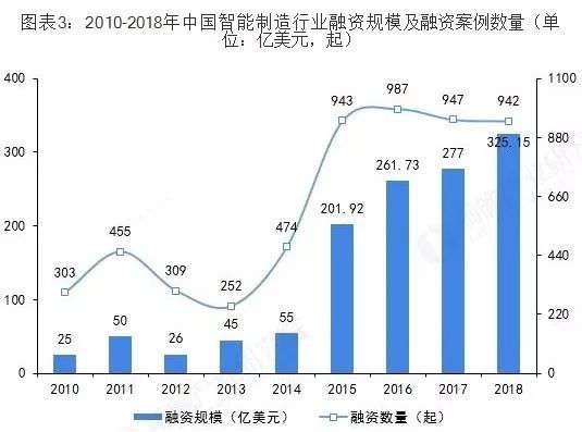 自2015年發(fā)布《中國(guó)制造2025》起,智能制造廣受資本市場(chǎng)青睞,融資數(shù)量和規(guī)模顯著增長(zhǎng);2016-2018年,中國(guó)智能制造發(fā)展動(dòng)力強(qiáng)勁,迎來(lái)融資高峰。2018年,智能制造融資金額達(dá)到325.15億美元,融資數(shù)量為942起。從融資輪次來(lái)看,初創(chuàng)企業(yè)更受資本家青睞,中國(guó)智能制造企業(yè)多數(shù)處于早期階段(種子輪-A+輪),占比超過(guò)50%。但獲得投資的智能制造企業(yè)融資階段已經(jīng)開(kāi)始逐漸向中后期聚集。