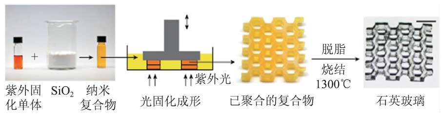 圖7 SLA技術(shù)制備透明石英玻璃流程圖
