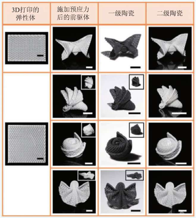 圖9 4D打印的彈性前驅(qū)體衍生陶瓷折紙結(jié)構(gòu)