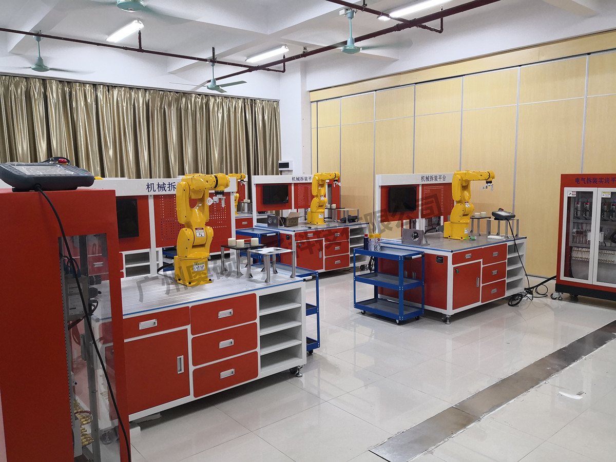 本項目建設之前,廣東工貿職業(yè)技術學院“工業(yè)機器人基礎控制實訓室”和“工業(yè)機器人示教編程與虛擬仿真實訓室”以及“工業(yè)機器人綜合應用實訓室”,“工業(yè)機器人公共實訓中心”都已建成?!肮I(yè)機器人裝調與維護實訓室”作為工業(yè)機器人系列實訓室的重要組成部分,用于學生拆裝工業(yè)機器人的機械結構,調試工業(yè)機器人的電氣系統(tǒng)。